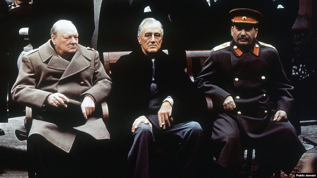 Уинстон Черчилль, Франклин Рузвельт и Иосиф Сталин на Ялтинской коференции в 1945 г. https://ru.krymr.com/