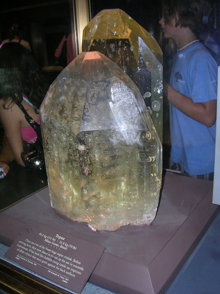 В музее также хранятся два самых больших в мире неограненных топаза: топаз Линдсей весом 32 кг и топаз Фримен весом 50 кг.