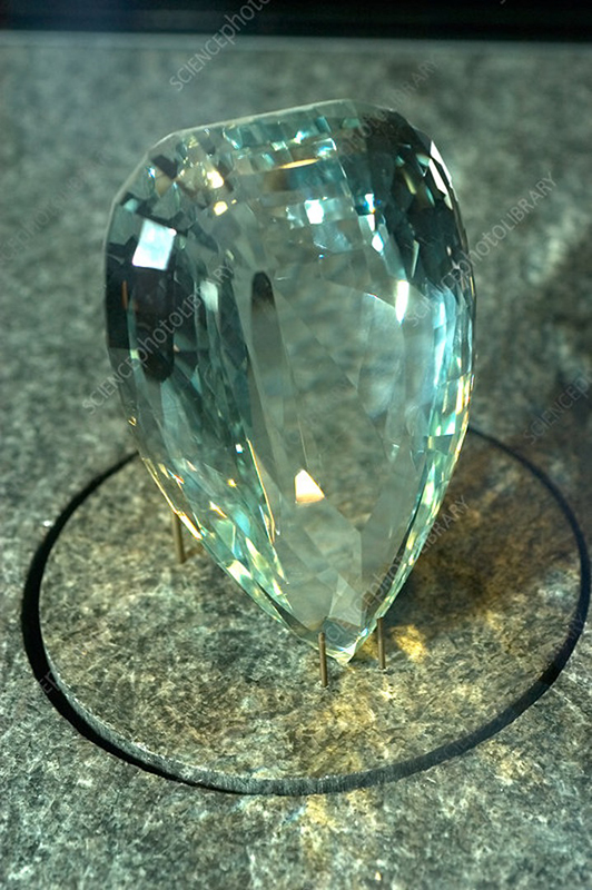 Коллекция минералов Британского музея естественной истории содержит два кристалла топаза, примечательных своей огранкой. Первый – ступенчато-ограненный камень квадратной формы, без изъянов, голубого цвета, весящий 614 метрических карат и происходящий из Бразилии. Второй камень – более крупный, бесцветный, имеющий бриллиантовую огранку, овальной формы, без изъянов, весом 1300 метрических карат.