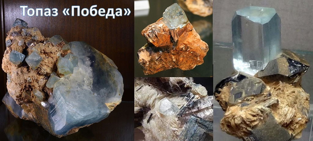 А крупные топазы (до 700 г) зеленовато-синего цвета попадали при промывке пород на Восточном логу Светлинского месторождения пьезокварца.