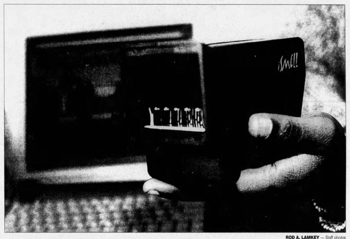 Сохранившаяся фотография прототипа устройства iSmell. Первоначально мог воспроизвести только 26 ароматов, включая чеснок, бананы и цветы