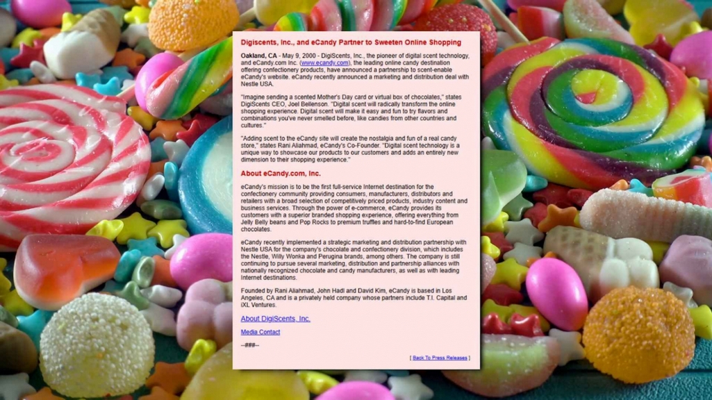 В результате Digiscents объявило, что будет сотрудничать с eCandy.com — онлайн-магазином выпечки. Как сказала Рани Али-Ахмед, соучредитель eCandy.com: «Представьте, что вы заходите в кондитерскую. И первое, что замечаете — это запах».