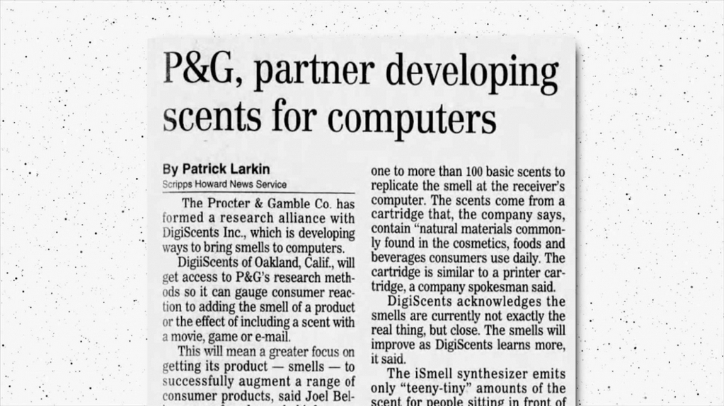 В 1999 году Белленсон и Смит основали стартап Digiscents. Первоначально они собирались сосредоточиться на программном обеспечении: создавать «индексы запахов» и продавать лицензии веб-компаниям, отдав производство самого исполнительного устройства на аутсорс.